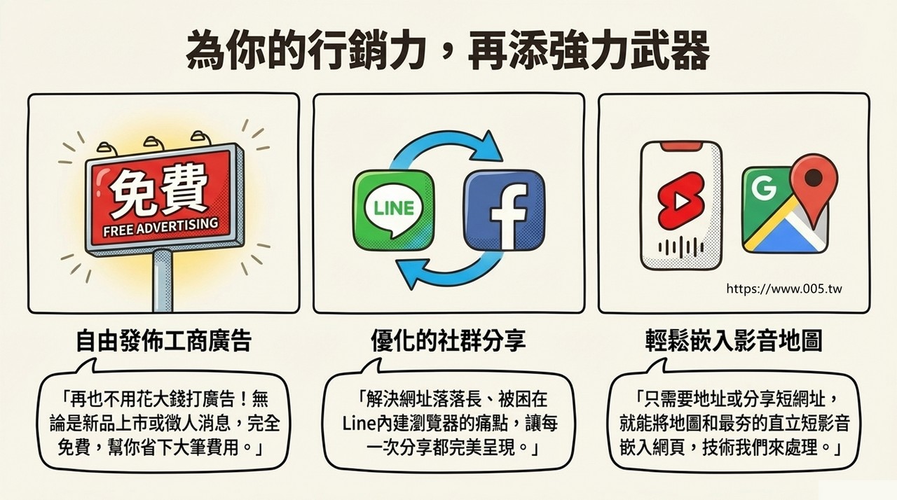 解決網址落落長、被困在 Line內建瀏覽器的痛點,讓每一次分享都完美呈現。