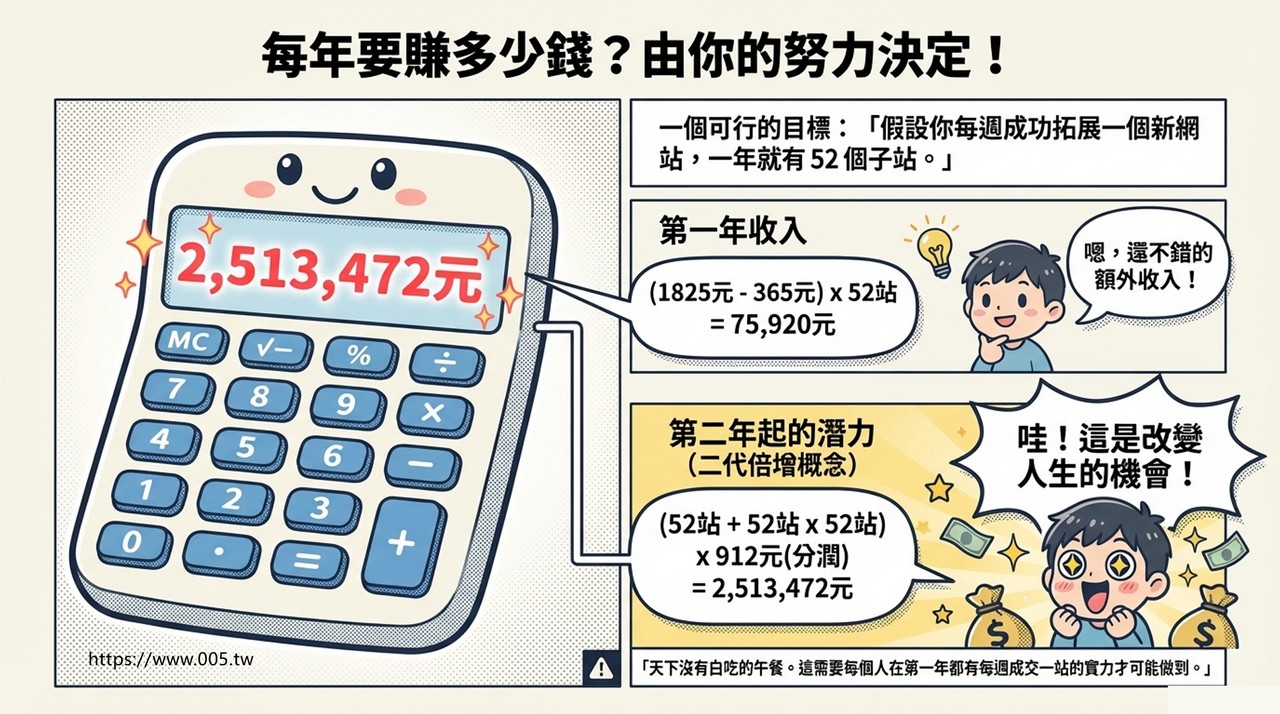 你租出去的網站越多,每年的業外收入就會越多。