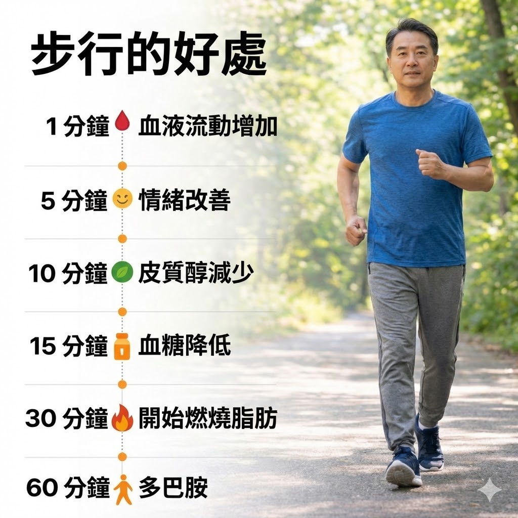 1 分鐘後 → 血液循環增加,喚醒身體機能。