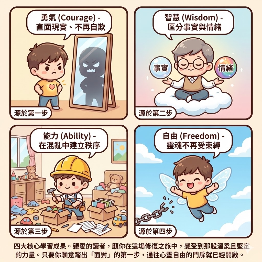 這份手冊所設計的「四味藥方」,本質上是透過有系統的修煉,帶領你完成與自我的深度和解。當你不再急於求成,而是願意耐心地走過每一個階段,你將會獲得這場旅程的