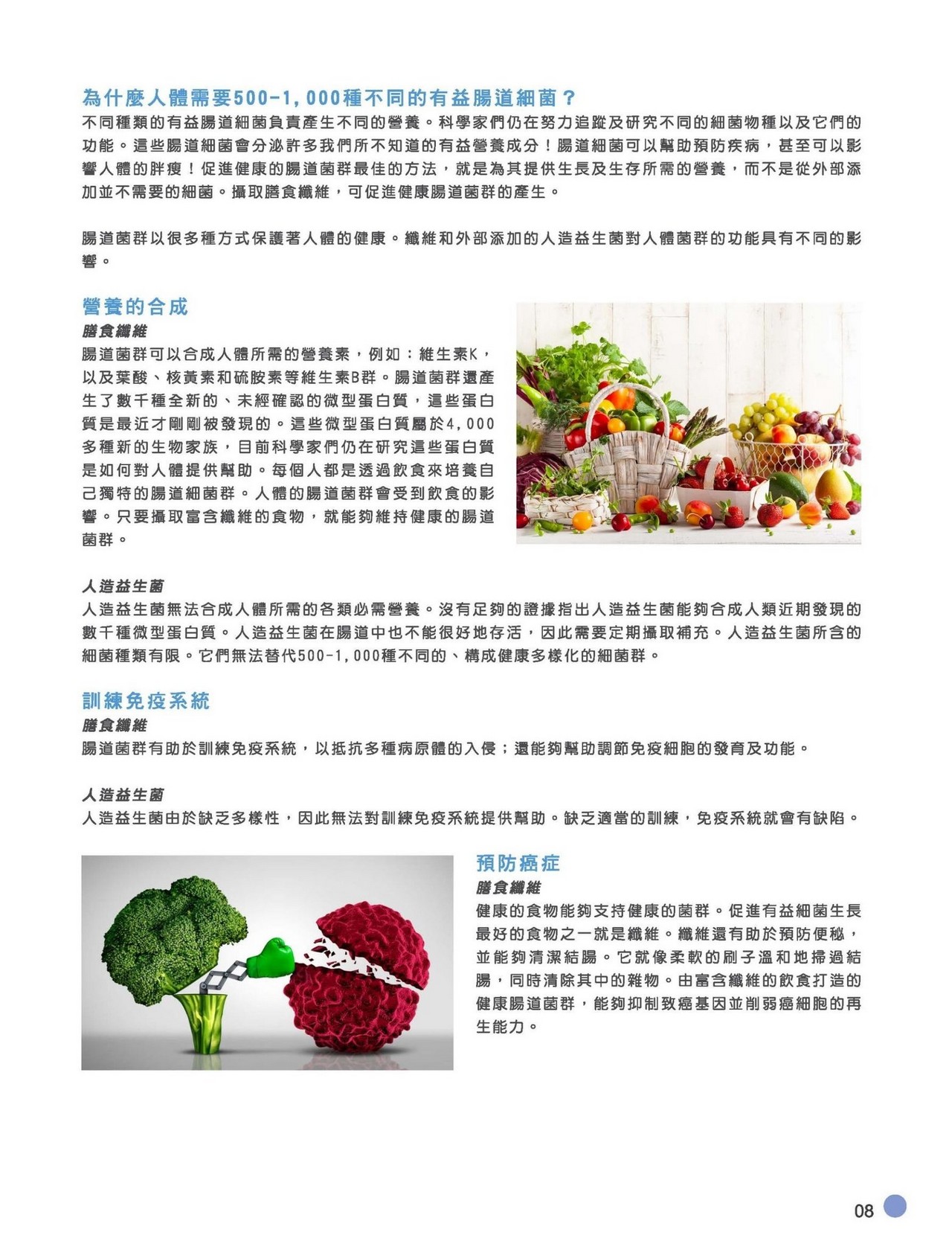 腸道益生菌能訓練免疫系統、幫助減肥、預防癌症、心臟病、過敏、抑制有害菌等。