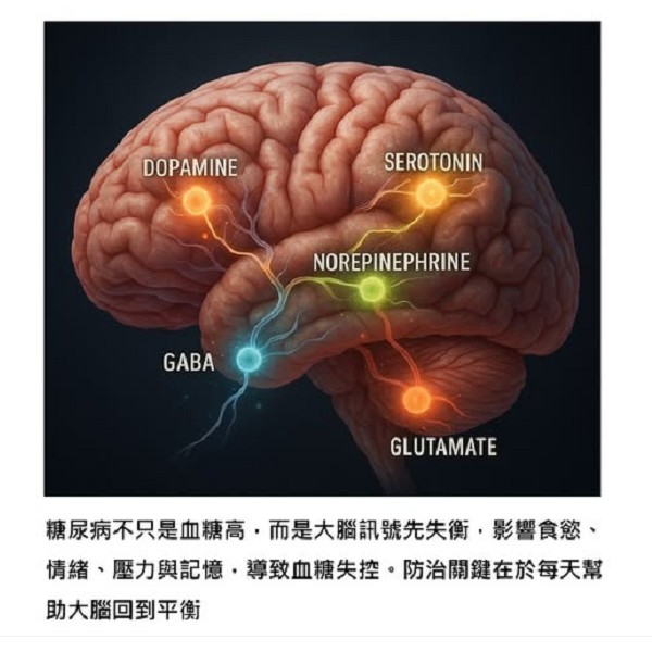 很多人一聽到「糖尿病」,腦中第一個反應就是「血糖太高」,所以就拚命少吃甜、少吃澱粉,甚至有人為了血糖每天量到焦慮。但最新的醫學研究提醒我們,其實糖尿病的起頭,不只是在血液裡,而是早早就發生在大腦。當大腦裡的神經傳導物質出現亂流時,情緒、食慾、壓力反應、記憶力,通通都會被牽動,最後才讓血糖失控。